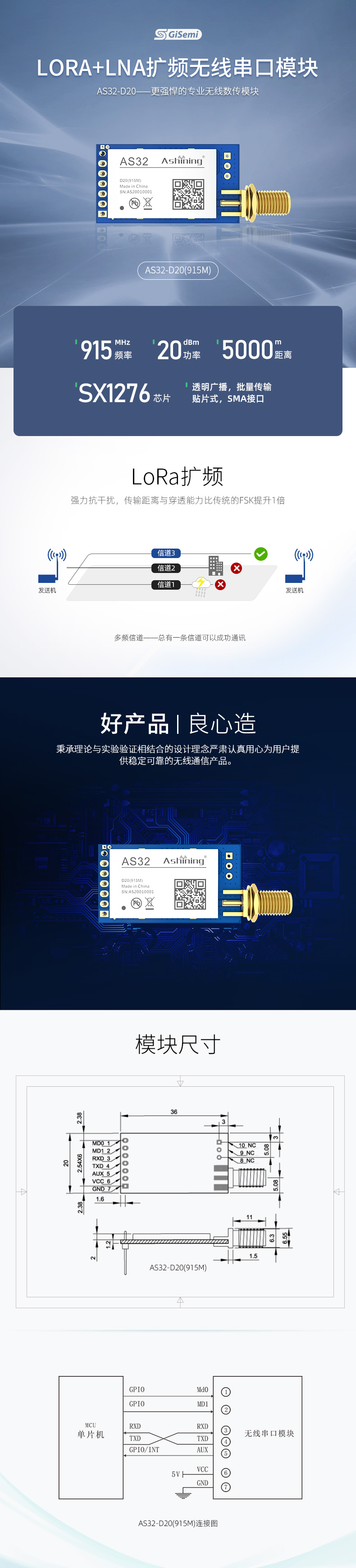 915MHz , 100mW,LNA,LORA扩频无线串口模块,数据加密,定点传输